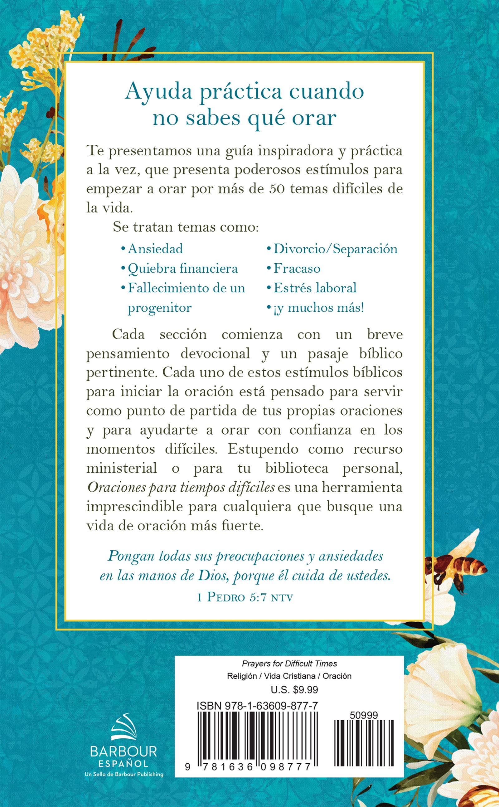 Practical Help When You Don’t Know What to Pray Here’s an inspiring yet practical guidebook offering powerful prayer starters for more than 50 tough life topics. Topics include: ​Anxiety Bankruptcy Death of a Parent Divorce/Separation Failure Job Stress Surgery and dozens more! Each section opens with a short devotional thought and applicable scripture. Each Bible-based prayer starter is meant to be used as a jumping-off point for your own prayers to help you pray confidently during difficult times. Great as a ministry resource or for a personal library, Prayers for Difficult Times is a must-have tool for anyone searching for a stronger prayer life.